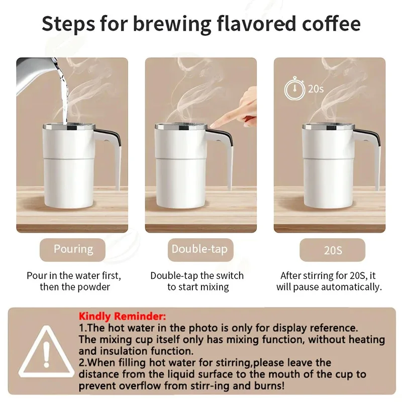 This 380ml electric self-stirring coffee mug is designed to mix your drinks automatically for convenience and efficiency. The built-in magnetic stirring system creates perfectly blended coffee, hot chocolate, or protein shakes with the push of a button. USB rechargeable design allows cordless use anywhere, making it ideal for home, office, or travel. IP67 waterproof rating ensures safe operation and easy cleaning. The digital display shows battery status and operational settings at a glance. Durable construction provides long-lasting performance and reliability. Its 380ml capacity is perfect for single servings of your favorite beverages. Lightweight and portable, it fits comfortably in hands and most cup holders. The smart design prevents spills and keeps your drink perfectly blended. This self-mixing mug is perfect for anyone seeking convenience, style, and efficiency in daily beverage preparation.
