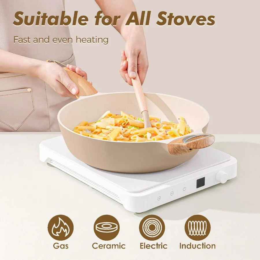 Welcome to Kitchen Elements Pro, where healthy cooking starts with quality cookware. This 14-piece ceramic pots and pans set is designed for everyday home cooking. The nonstick ceramic coating allows food to release easily with less oil needed. Crafted for induction compatibility, it works efficiently on multiple cooktop types. The non-toxic materials support safer and healthier meal preparation. Even heat distribution helps deliver consistent cooking results every time. The set includes essential cookware pieces for frying, boiling, and simmering. Durable construction ensures long-lasting performance for daily use. Easy-to-clean surfaces save time after cooking. Enjoy stylish design, reliable performance, and healthier cooking with this complete ceramic cookware set.